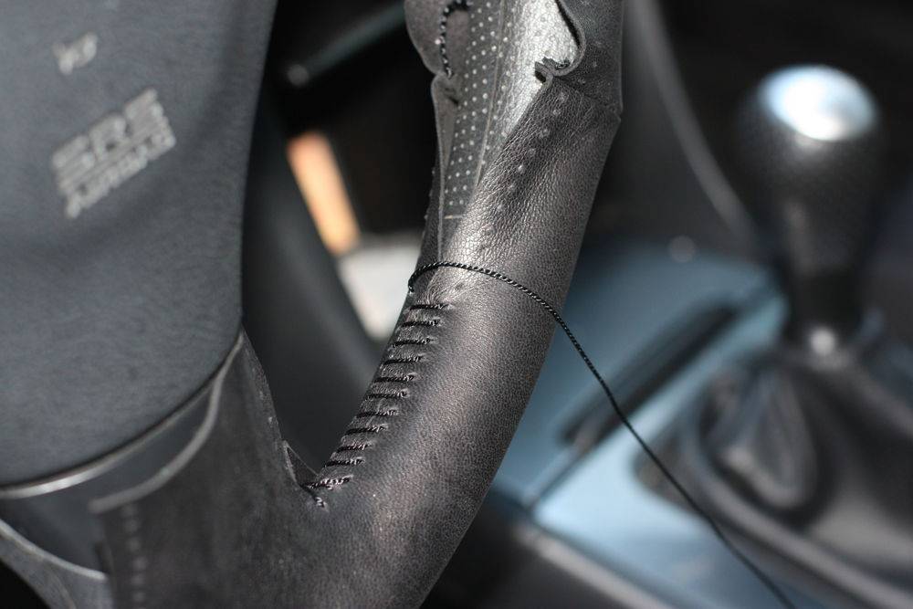 Возможна перетяжка поверх старой оплётки. Габариты новой оплётки подбирают с учетом больших размеров. Руль с оплёткой толще.