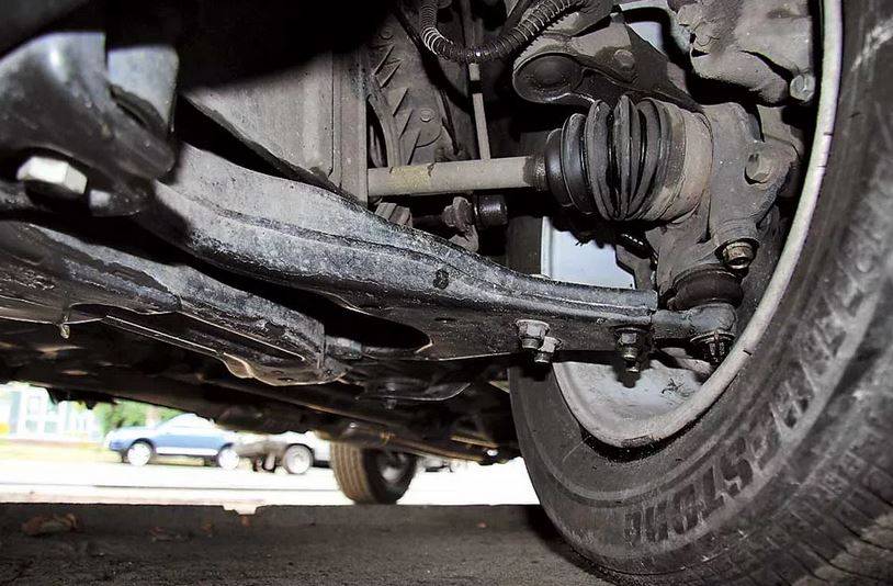 После осмотра стоек следует вывернуть колеса и осмотреть все пыльники и сайлентблоки. Обычного выворота колёс хватает, что бы осмотреть состояние шаровых опор, косточек (линков), шрусов, сайлентблоков, рулевых тяг. Разорванный или потрескавшийся пыльник говорит о том, что деталь пора менять.