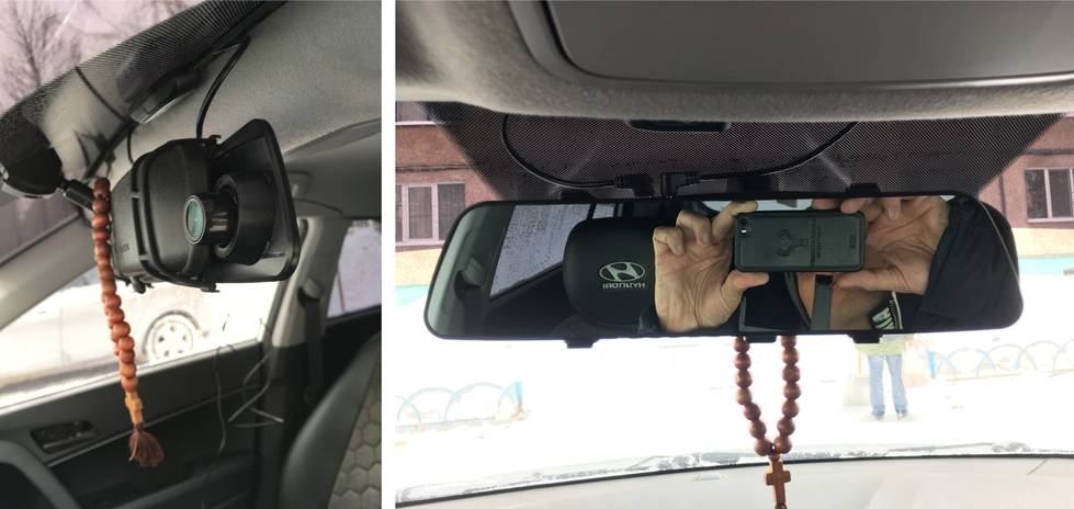 – установка видеорегистратора поверх штатного зеркала и скрытая проводка делают его не заметным с улицы\, и необходимость в регулярном снятии/установке отпадает: