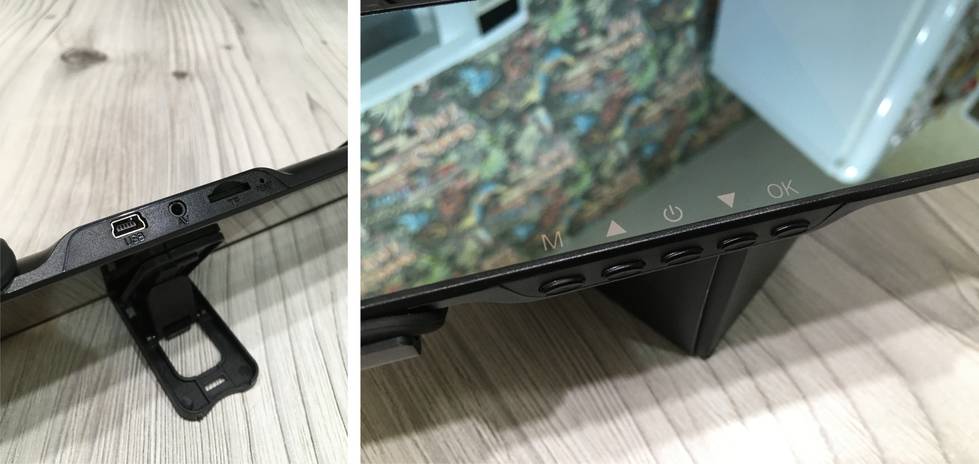 – на верхней грани расположены разъемы подключения питания и камеры заднего вида\, а также слот для карт-памяти MicroSD объемом до 64Gb и кнопка перезагрузки. В нижней части находятся кнопки\, дублирующие сенсорное управление: