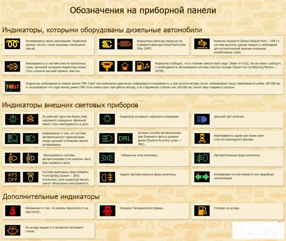 Это основная информация, которую стоит усвоить начинающему автовладельцу, прежде чем выяснять, что именно означает тот или иной значок.