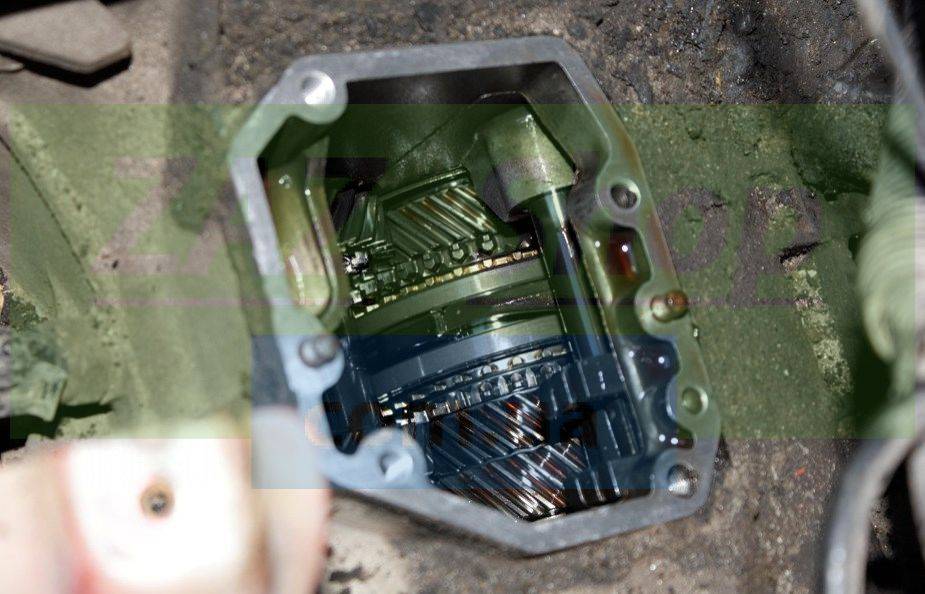 Аккуратно подрываем крышку. Следите за прокладкой, чтобы куски уплотнителя, если он порвался, не упали внутрь коробки. Крайне желательно произвести замену прокладки крышки КПП на новый аналог из металла. Если такой возможности нет, то следует обзавестись герметиком, чтобы посадить старую прокладку на клейковину. В противном случае старая прокладка не даст оптимальной герметичности.