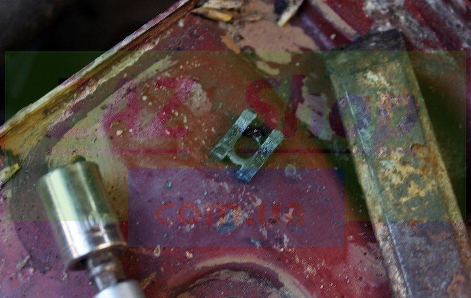 Выбиваем палец, который стопорит ход штока КПП Daewoo Lanos. Палец можно выбивать непосредственно внутрь крышки, в корпусе предусмотрен специальный приямок для этого. Хотя автор видео предпочел разобрать полностью весь механизм переключения. Перед выбиванием пальца из его макушки следует извлечь стопорный штифт.
