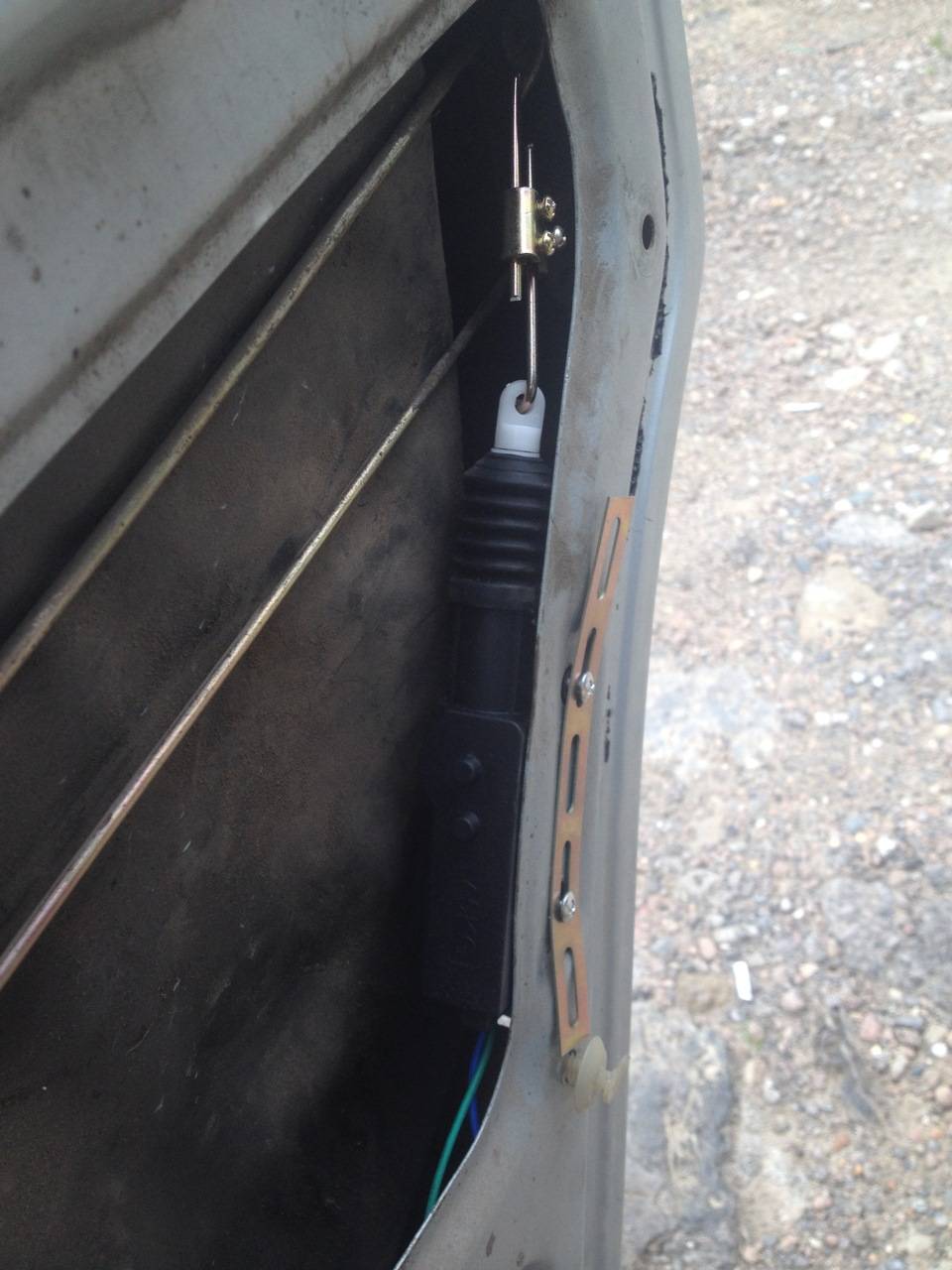 С установкой Актуаторов на задние двери проблем не возникло, в дверях уже были 2 отверстия для крепления, единственное нужно было просверлить отверстие в центральной стойке и двери для проводов.