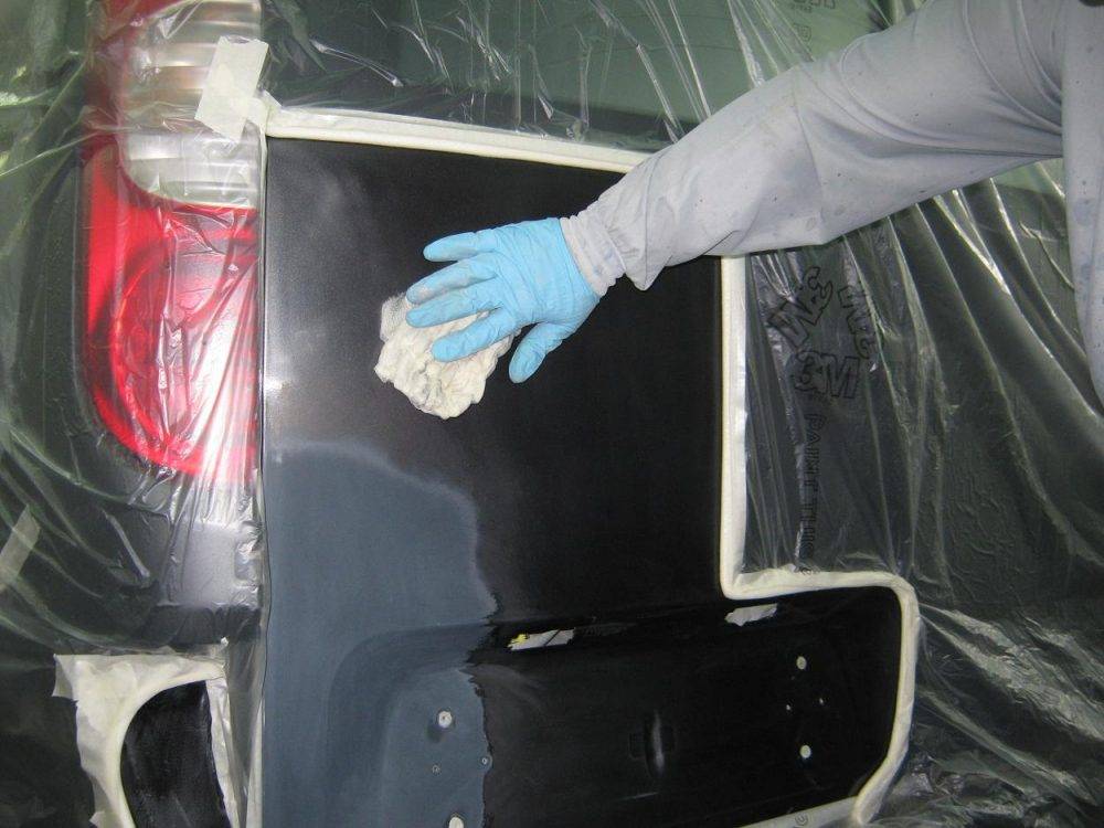 Только после выравнивания деформаций, царапин и повреждений на кузове, его необходимо снова обезжирить и просушить, и только после этого начинать покраску.