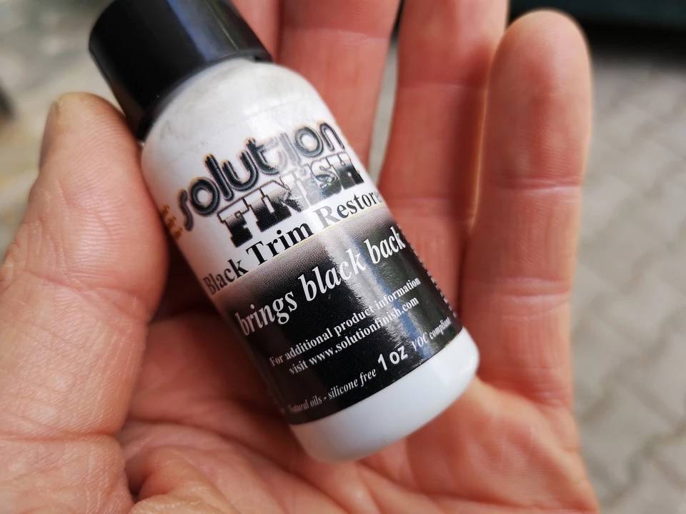 Поскольку продукт содержит большое количество пигментов, даже его минимальное количество качественно окрашивает материал в черный цвет. Небольшого количества, нанесенного на черную полоску с помощью губки-аппликатора или ткани, достаточно, чтобы сделать элемент черным, – и он будет черным с оптимальным матовым блеском. Все же это не краска. После очистки черные полосы остаются черными. Через месяц они также будут черными. Эта штука неплохо работает!