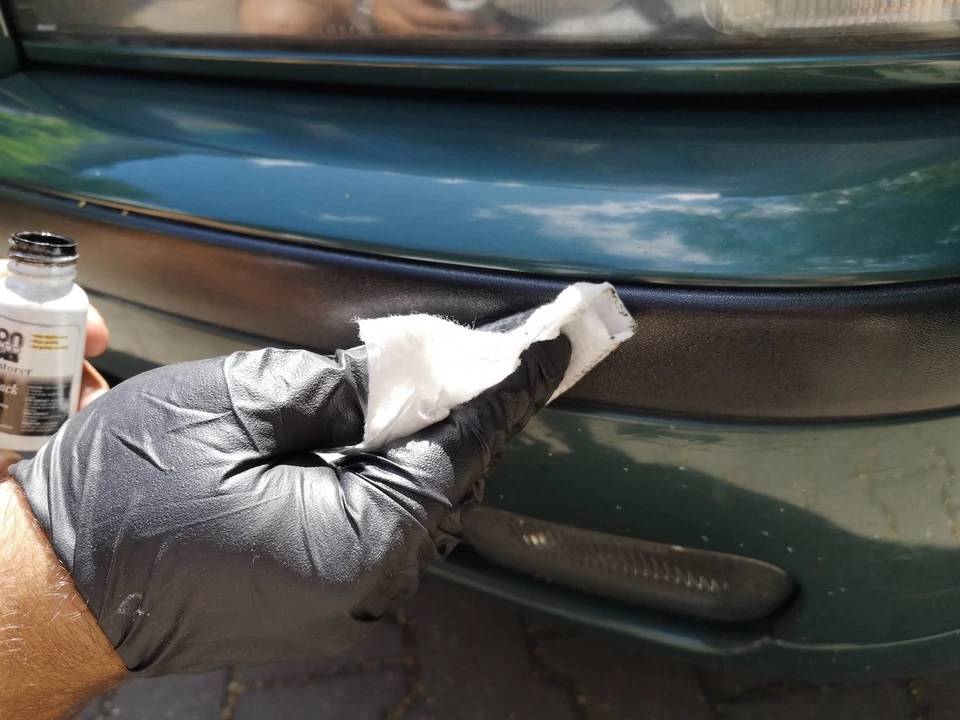 Рабочие варианты чернения выцветшего пластика на бампере и молдингах, и удаление царапин с него