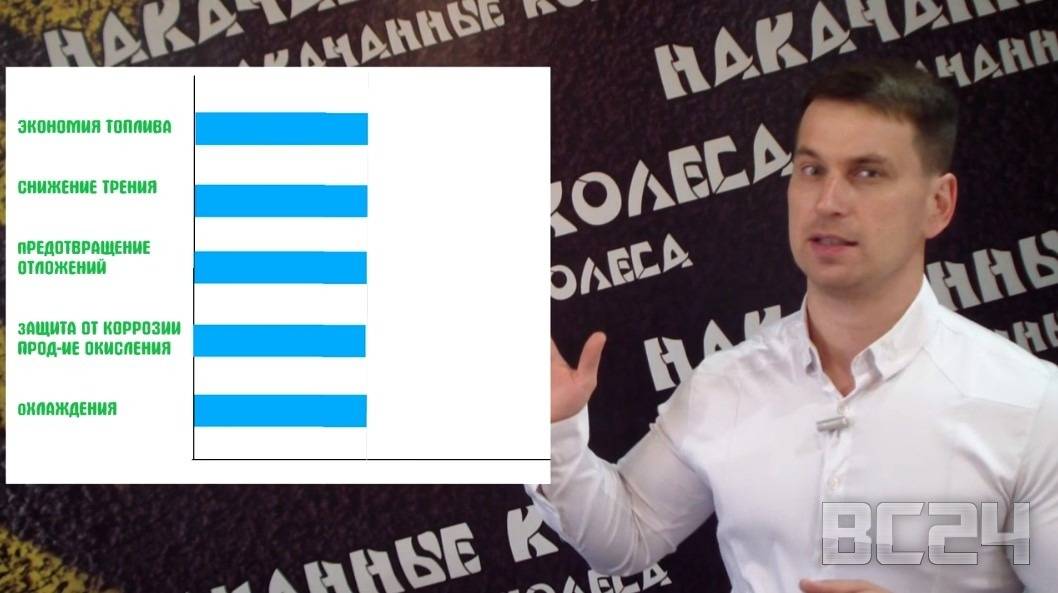 Готовое масло можно представить на примере стакана воды, на 80% заполненного водой — это базовое масло, а на 20% из присадок. Все стакан полон. Но если мы добавляем что то новое, то что то должно выплеснуться. Это выплеснулись характеристики масла. То есть характеристики в новом масле уже поменялись.