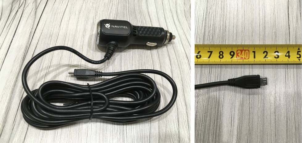 Пробежимся по комплектации подробно:Зарядное устройство в прикуриватель с MicroUSB-разъемом, и достаточной для скрытого монтажа длиной кабеля 3,4 метра: