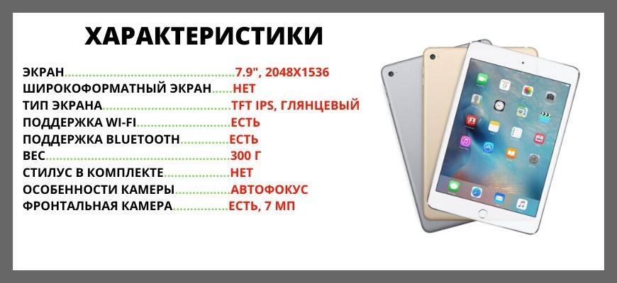 Как и все приборы компании, планшет отличается надежностью, производительностью и хорошим изображением. Однако он еще долго не устареет морально, поэтому при отсутствии финансовых ограничений это отличный вариант. Диагональ экрана — 7,9 дюймов. Этого достаточно для работы с планшетом, так как не перекроет обзор. При активном использовании прибор работает от аккумулятора до 12 часов.