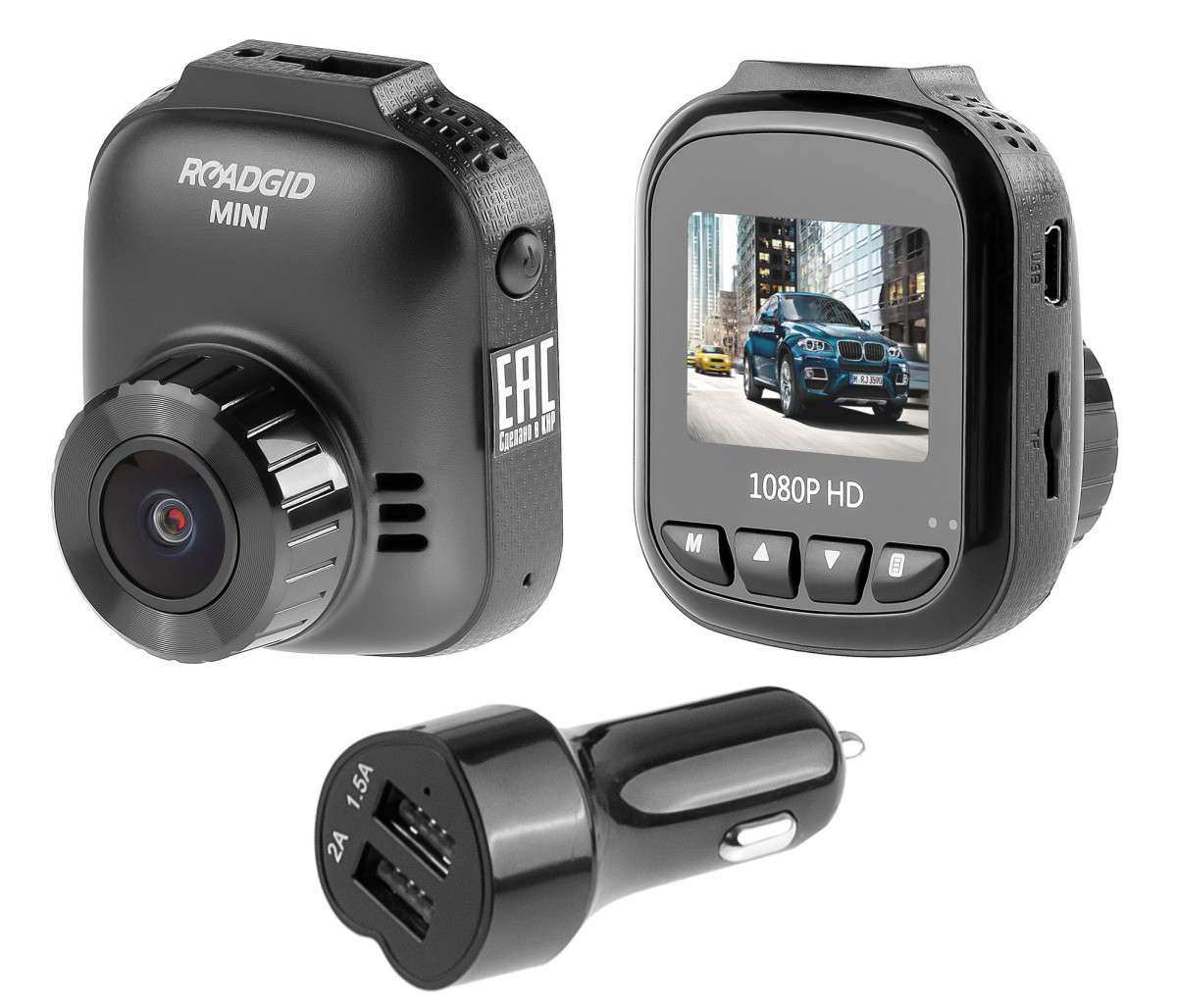 Открывает наш рейтинг стильное, компактное и недорогое устройство с говорящим названием Roadgid Mini. Девайс пишет в FullHD и поддерживает ночную съемку. В надежном видеорегистраторе от Roadgid используется сенсор с углом обзора 140 градусов (по диагонали) и светосилой f/1.8. Прибор поддерживает только цикличный режим записи и два типа разрешений: HD с частотой кадров 60 fps и Full HD, но при 30 кадрах/с. Отснятые видео пользователи могут просматривать на встроенном 1,4-дюймовом экране с разрешением 320×240 точек или компьютере. Во втором случае карту памяти легко подключить через USB-картридер, который есть в комплекте.