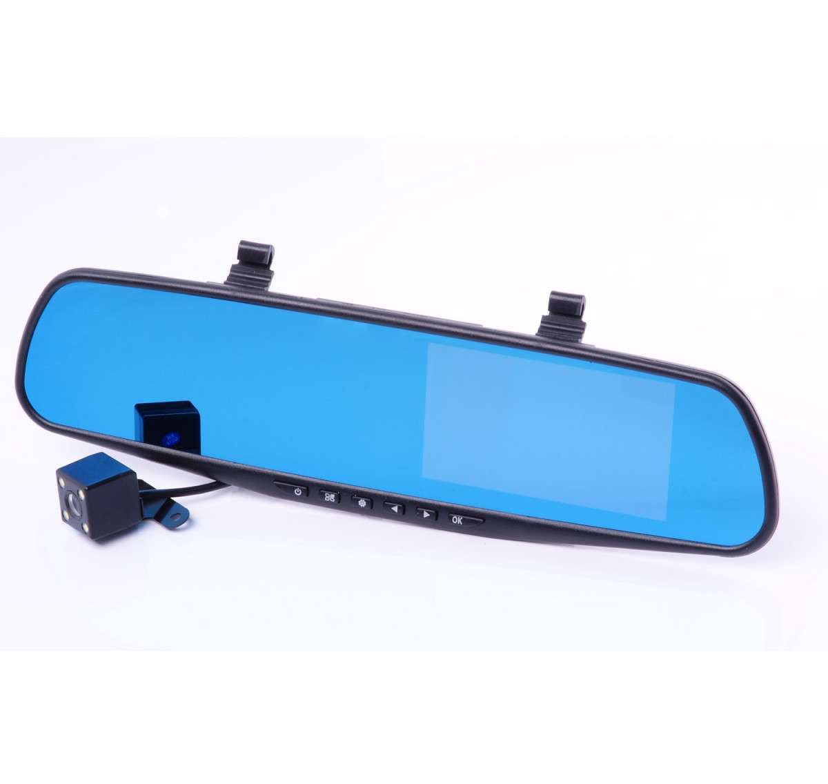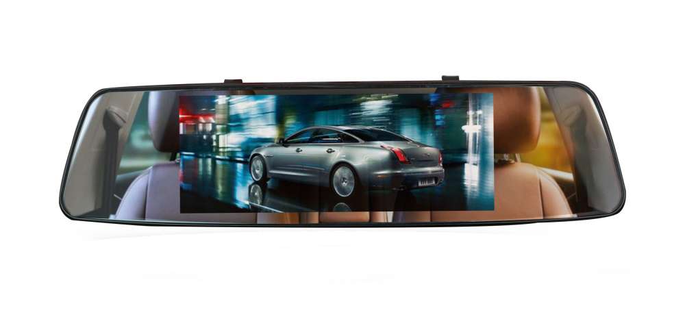 Недорогой двухканальный видеорегистратор «Playme BIT» отличается зеркалом заднего вида, корпус которого выполнен из качественного алюминия, и большим сенсорным экраном.