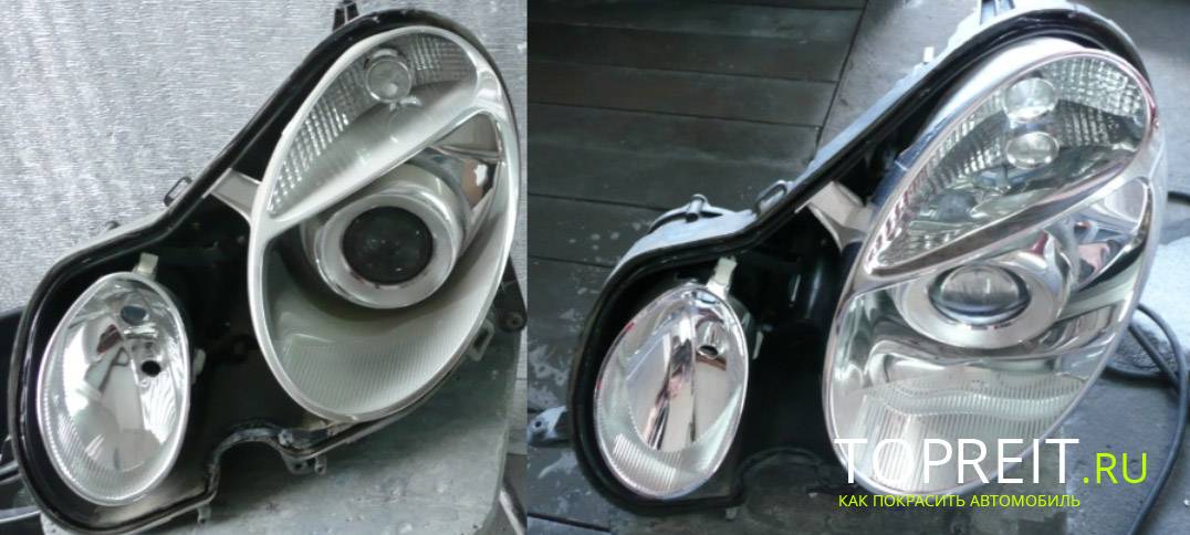 ремонт фар: до и после