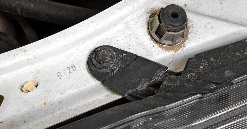 демонтировать бампер — крепится несколькими болтами к передку кузова сверху и снизу на кронштейнах;