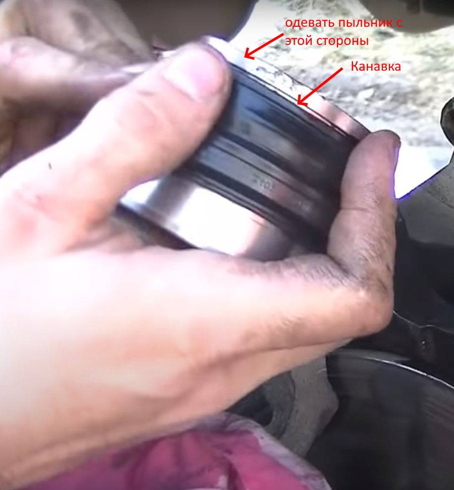 Теперь одеваем новый пыльник на цилиндр. Одевать пыльник нужно со стороны канавки на цилиндре. Так он станет в нужное нам положение.