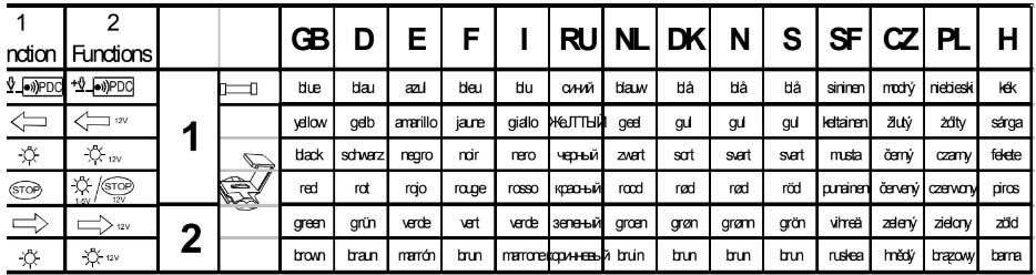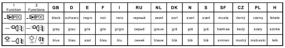 | 05 | коричневый | Подсветка номерного знака и правые габариты |