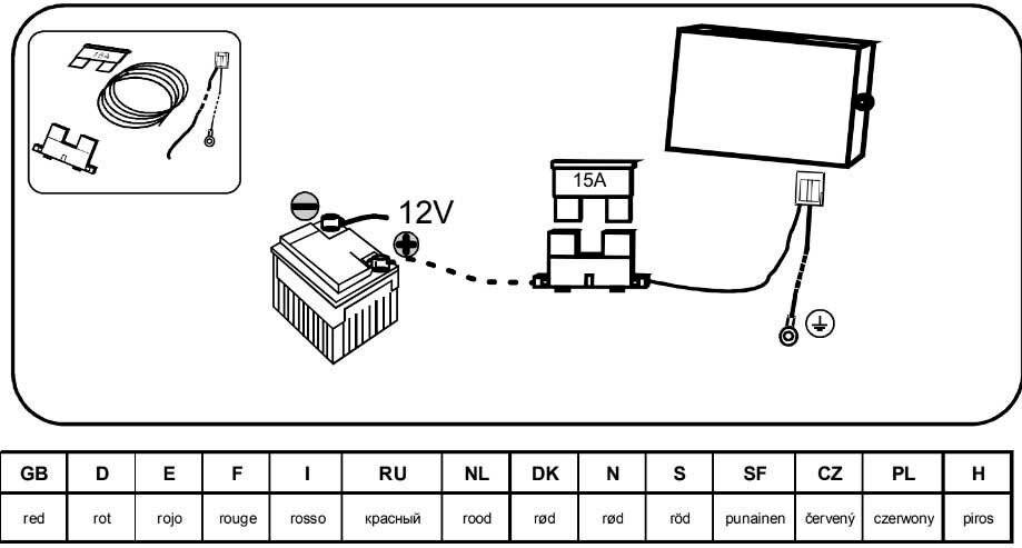 | 09 | Красный и коричневый | 12V от аккумулятора |