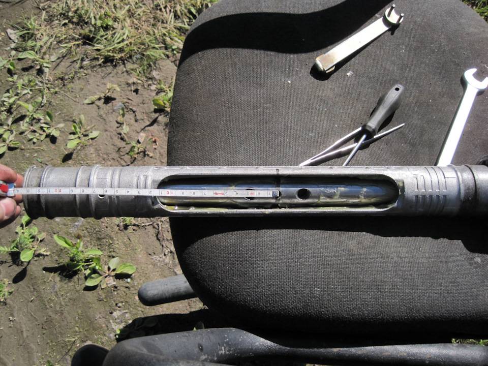 Затем на фото нет края развальцованной трубки загнул внутрь трубки молоточком по-кругу , сделал типа галтели Пара фот: Левый это когда на машине сальника, пилу обмотал полиэтиленом. Часть штока полая внутри, через это отверстие полости пыльников тяг сообщаются.