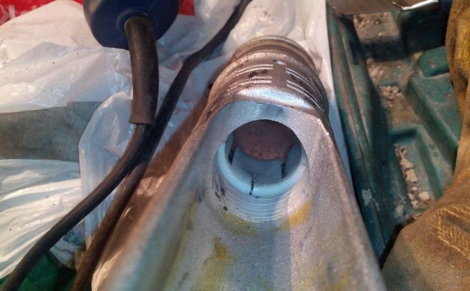 Поставить прижимную гайку у которой срывалась резьба — можно заменить, сделать резьбу или наварить новую в верхней части. Вкрутить заглушку из пластмассы.