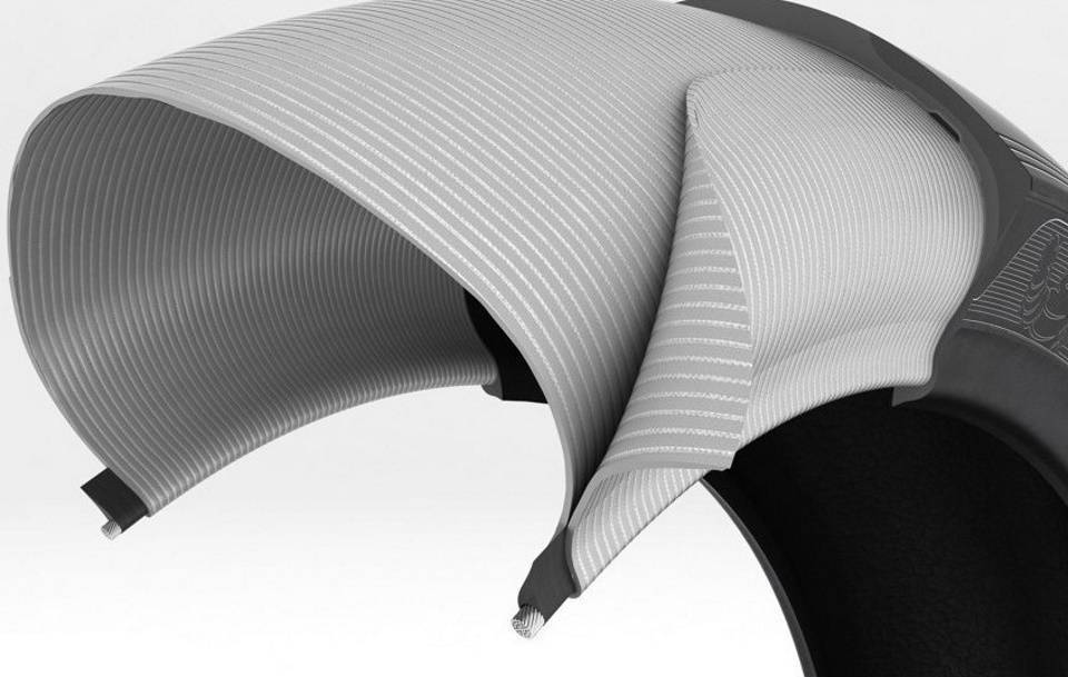 каркас – слои прорезиненного корда для обеспечения прочности, восприятия внутреннего давления воздуха, а также передачи внешней нагрузки от дороги на колесо;