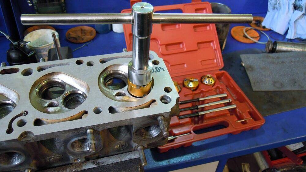 После запрессовки и остывания ГБЦ следует проверить, не болтается ли элемент на посадочном месте. Если зазор отсутствует, а замененный элемент плотно держится на своем месте, процедуру его замены можно считать оконченной. Далее требуется прирезка седел клапанов с использованием шарошек.