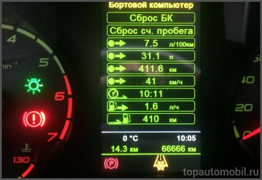 - Листайте меню бортового компьютера с помощью кнопки на ручке управления дворниками до тех пор, пока на дисплее не отобразится меню или значок сброса бортового компьютера.
