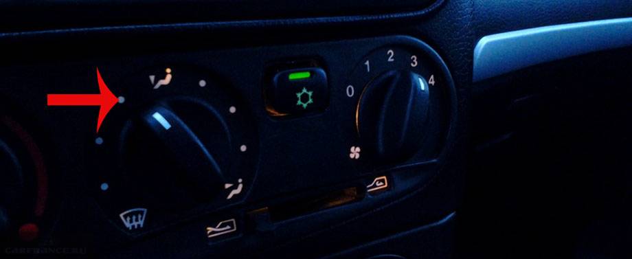 - Ручка направления обдува поворачивается в положение «12 часов» и сразу возвращается на «10 часов». Воздух должен начать поступать в нижнюю часть салона.