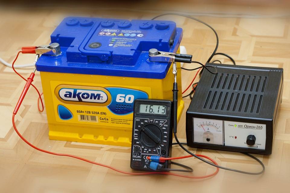На первом этапе устанавливается ток в размере 0,1 от номинальной емкости АКБ. На легковых автомобилях распространены батареи 60 А-ч. Поэтому для них устанавливают значение в размере 6 А при напряжении силы тока в 14,4 вольта. Контролировать эти показатели поможет мультиметр.