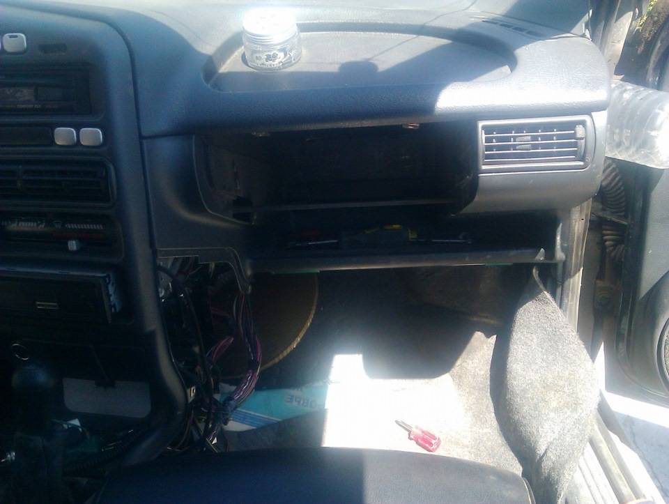 - Бардачок держится на 6 саморезах. Снимаем бардачок.