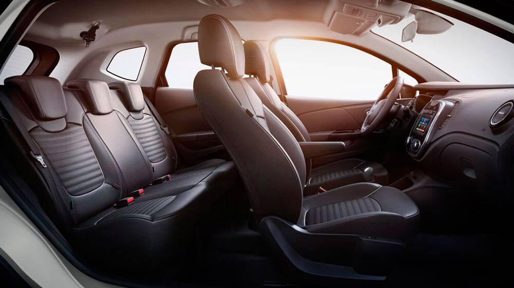 Кресла нового Каптюр почти не изменились. Возле сидения водителя в некоторых модификациях есть откидной подлокотник. Обивка традиционно тканевая, чехлы из кожи в пакете опций. Так как кроссовер небольшой по габаритам, задние сиденья принять троих абсолютно комфортно не смогут. Тем более, продольное перемещение кресел ограничено 16 см (см. видео).