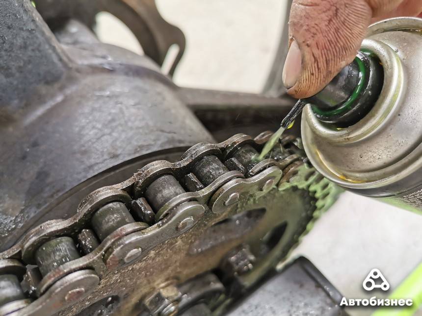 Чаще всего в мотоциклах применяется обычная цепь, сальниковая или бессальниковая. Ее нужно периодически подтягивать и смазывать каждые 300 км или после очередного дождя. Иногда по мере загрязнения нужно чистить щеткой с соляркой или керосином – не самое приятное занятие. В общем, цепь требует внимания. Зато с ней можно ездить по бездорожью, да и сам по себе узел относительно недорогой (цепь DID, например, стоит около 100$). Что делать, чтобы продлить жизнь цепи и избавить себя от ее смазки?