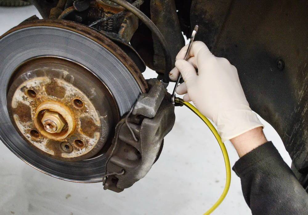 Замена старой ТЖ новой проводится осторожно и по очереди в контурах ТС. Первым в очереди на этот процесс стоит колесо, расположенное вдали от главного цилиндра ТС