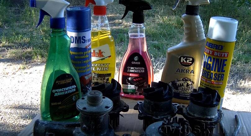 После подготовки можно приступать к мытью. Но для этого нужно ещё выбрать правильное средство. Оно не должно навредить материалу, из которого сделан блок и другие части, а также без проблем удалить весь масляный налёт. Такие вещества продаются в любом автомобильном магазине и стоят не очень дорого, то есть, проблем с выбором и покупкой не возникнет.