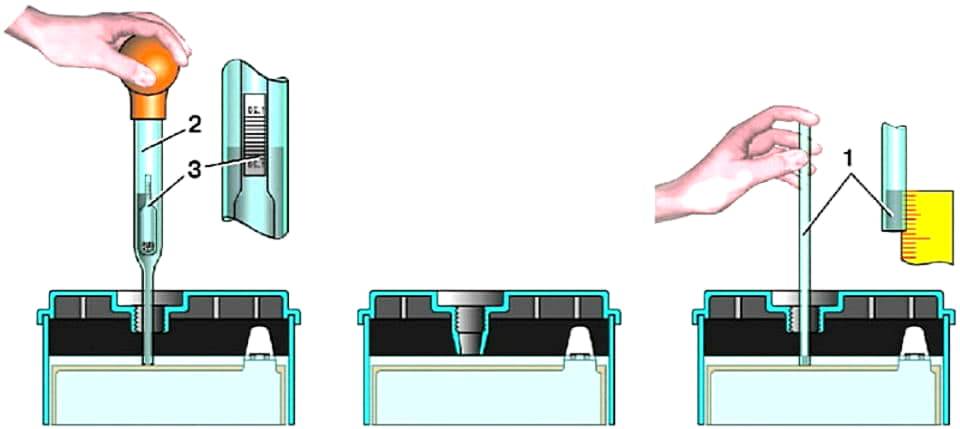Проверка плотности и уровня электролита в аккумуляторе