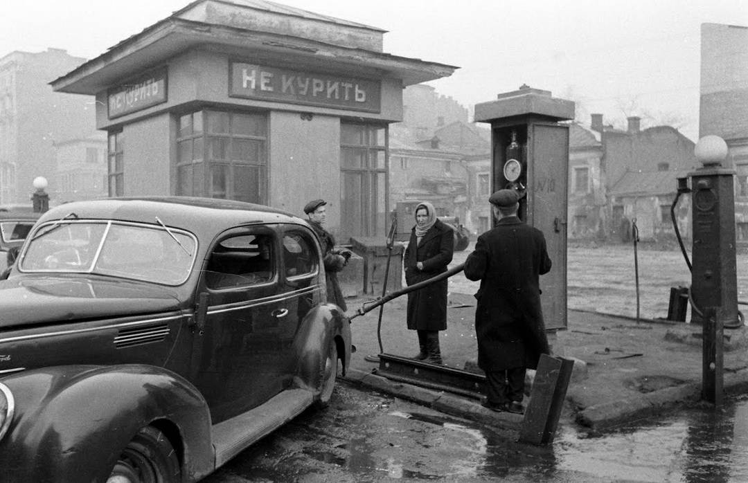 На фото Наума Грановского 1947 года — московская АЗС и Ford De Luxe Sedan ‘1941, скорее всего поступивший в СССР по ленд-лизу