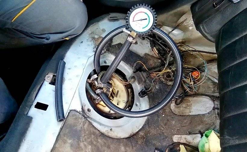Для этого прикрепляется манометр к форсункам, и измеряется системное давление. Делать это необходимо 4 раза: