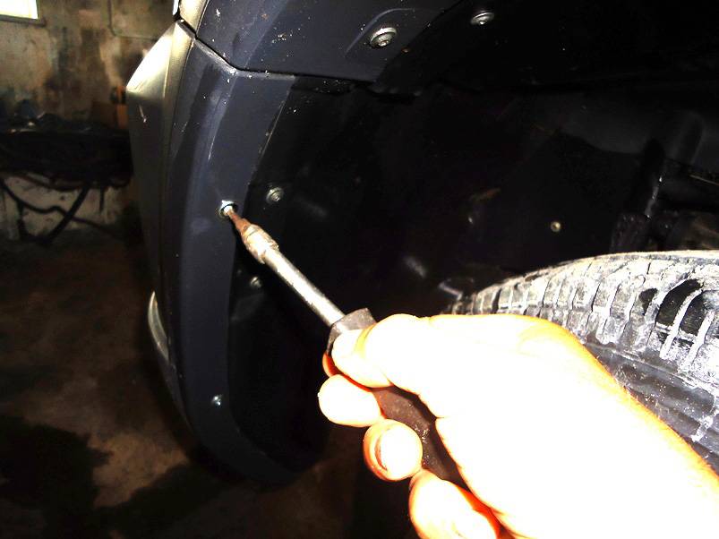 - Открутить защиту передних колес, это 3 самореза от бампера отверткой.