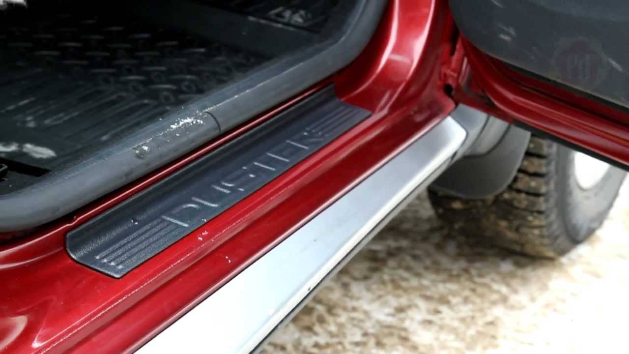 Для комфортной посадки пассажиров, а также защиты кузова от деформации устанавливают специальные пороги на Рено Дастер. Чтобы защитить их, устанавливаются специальные металлические или пластиковые накладки, которые бывают как внутренние, так и наружные. Внутренние являются более декоративными, а вот наружные выступают в качестве подставки для ног. Эксплуатируя автомобиль, он подвергается различным природным и механическим воздействием, особенно им подвержен порог, у которого из-за этого может нарушиться целостность, и придется производить ремонт или замену данной детали.