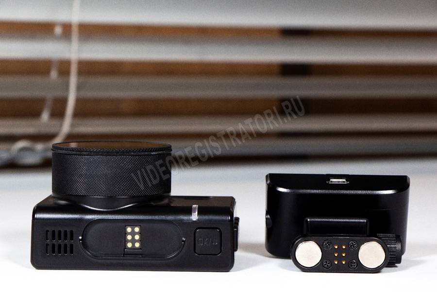 Еще одна приятная особенность устройства, которая заметна сразу из коробки, — сквозное питание. Крепление видеорегистратора выполнено достаточно массивным, но тому есть причина. Через него к самому гаджету идет питание и данные со второй камеры. Здесь же находится встроенный GPS-модуль.