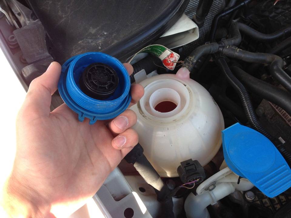 - жидкость выбрасывает через пробку бачка. Тогда вокруг крышки и на стенках емкости будут видны потеки. При этом под машиной в сухую погоду легко заметить мокрое пятно;