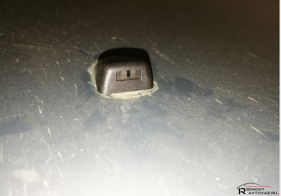 - Форсунку вынимают из отверстия на капоте, прижав шлицевой отверткой фиксатор;