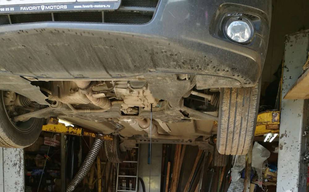 На подготовительном этапе потребуется прогреть автомобиль, оптимальным вариантом считается короткая поездка на 5-10 км. Далее машину паркуют на ровном месте, по возможности используют эстакаду, ремонтную яму или подъемник.