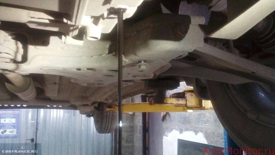 Для удобного доступа к сливной пробке (и в некоторых моделях масляный фильтр также крепится с низу) и днищу автомобиля в целом нужно будит поддомкратить либо заехать на смотровую яму (лучший вариант). Также, в некоторых моделях может быть установлена «защита» картера двигателя.