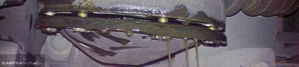 После того как масло стечет, открутите болты до конца и снимите крышку поддона. Снимите прокладку, она чаще всего пристает к поддону или крышке. Если у вас нет новой, то при снятии будьте предельно аккуратны, чтобы не порвать ее.