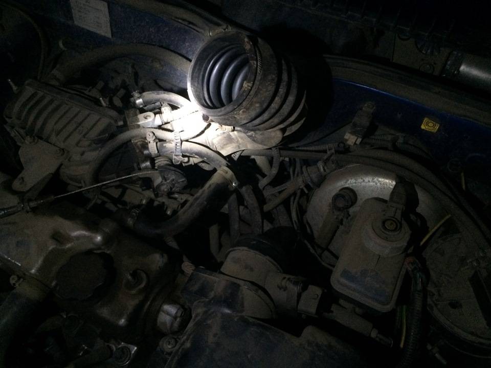 Для того что бы залить новое масло в коробку необходимо вытащить щуп, подобраться к нему можно сняв патрубок от воздушного фильтра и расслабив хомут как это показано на рисунке ниже: