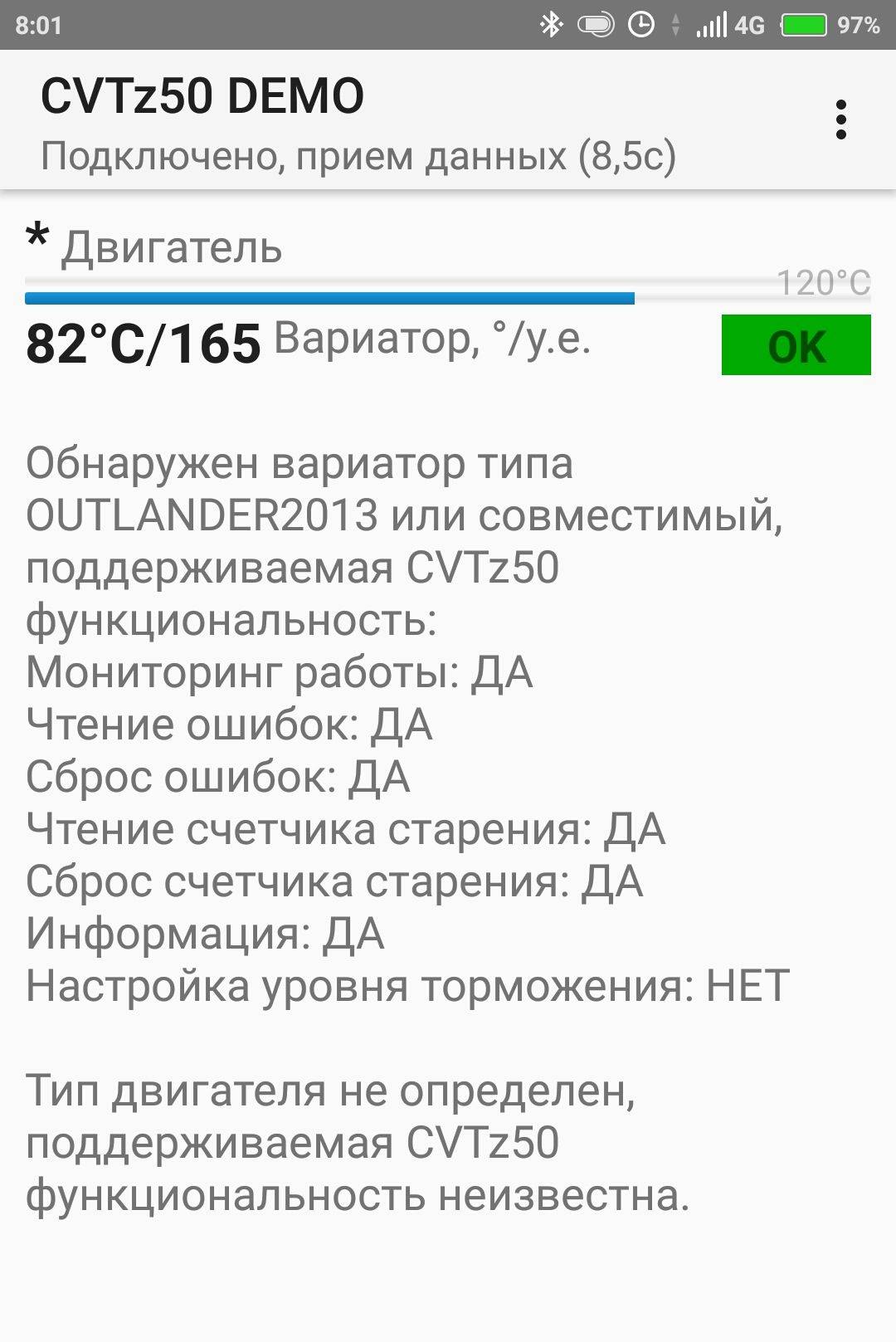 Сведения со счетчика деградации в три и больше раза меньше числа на одометре. Коробка-вариатор Mitsubishi Outlander 3 в хорошем состоянии. Температура нормальная. Перегревов не было.