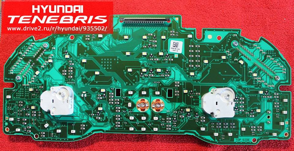 Плата подсветки спидометра. Основная сложность, оказалось, именно здесь. Прибор спидометра за счет встроенного одометра очень громоздкий и для подсветки остается совсем мало места. В результате подрезок и подточек от платки осталось совсем немного.