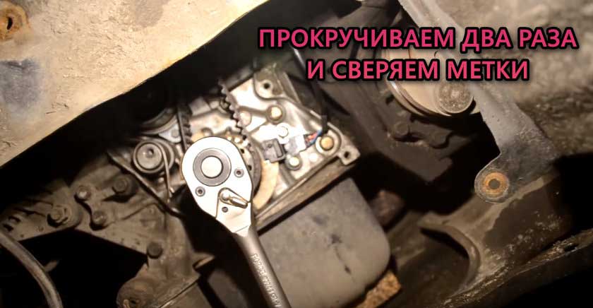 - Проверка укладки путём проворачивания ключом шкива коленчатого вала;