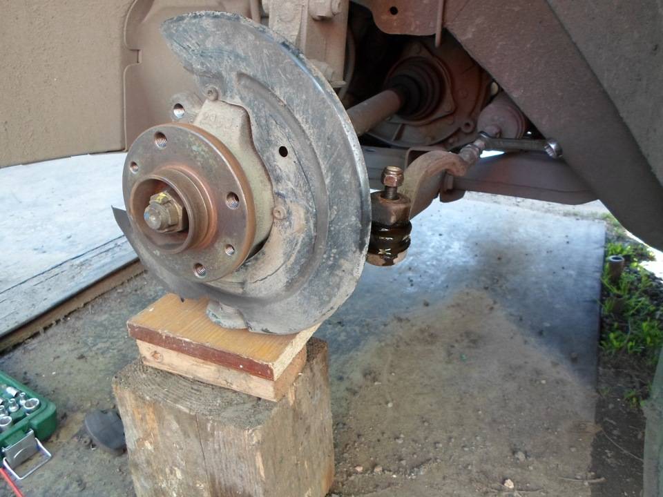 Чтобы добраться до неисправного элемента, придется снять переднее колесо и, лишь затем удастся открутить гайку шарового механизма. Чтобы рассоединить деталь наконечника, производят несколько ударов тяжелым инструментом (молотком) по нему снизу.