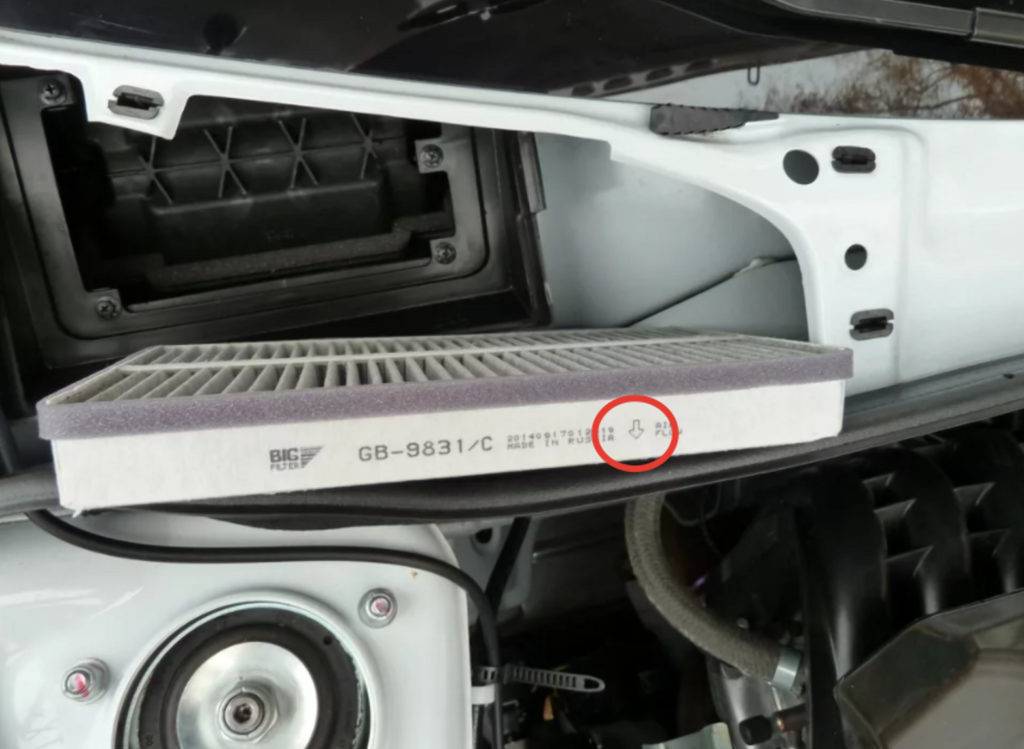 Стрелка должна смотреть строго вниз – в сторону вентилятора отопителя.